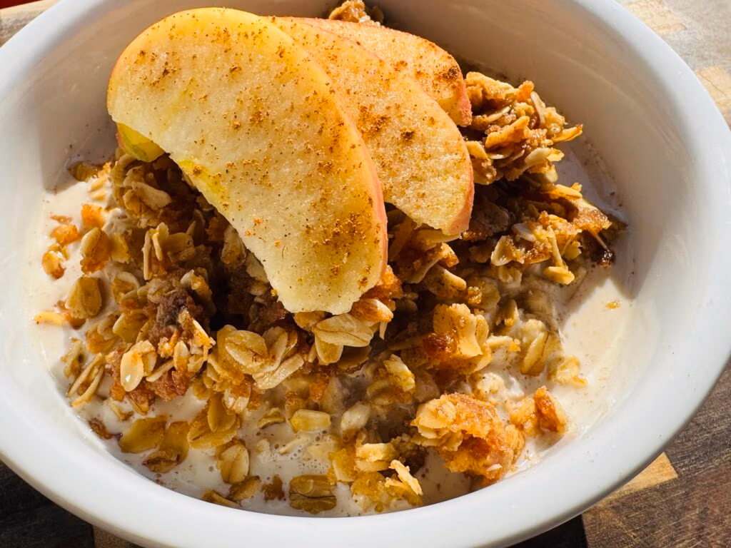 - It feels indulgent — but it’s good for you. Oats, apples, and Greek yogurt give you fiber and protein.