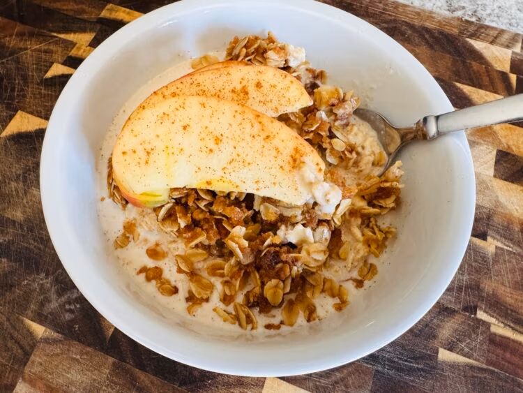 - It’s got texture. The oats are creamy, the apples stay firm-tender, and that toasted streusel on top? Crunch magic.