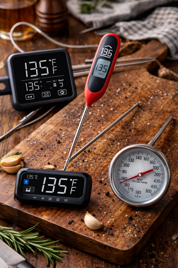 Learning to use meat thermometers completely changed the way I cook. What used to feel like guesswork—cutting into meat, hoping it was done, and quietly panicking—became calm, confident, and repeatable. Whether I’m cooking steak, pork, chicken, or fish, meat thermometers help me get consistent results without stress. This guide breaks down the best meat thermometers for cooking, how to use them, and which ones actually earn a place in my kitchen.