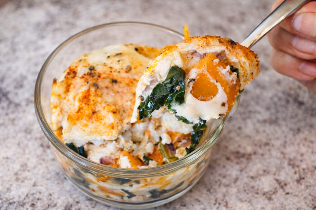 This particular version—sweet potato, spinach, Parmesan, and goat cheese—is one of my favorites because the flavors balance so well. It’s savory, creamy, and comforting without being heavy.