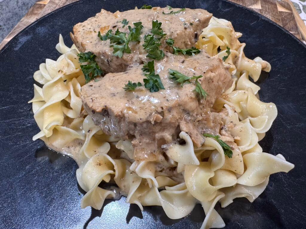 For this pork tenderloin, I used a cream of morel mushroom soup powder I had on hand. But I’ve tested it with standard canned cream of mushroom soup too — and it still slaps.